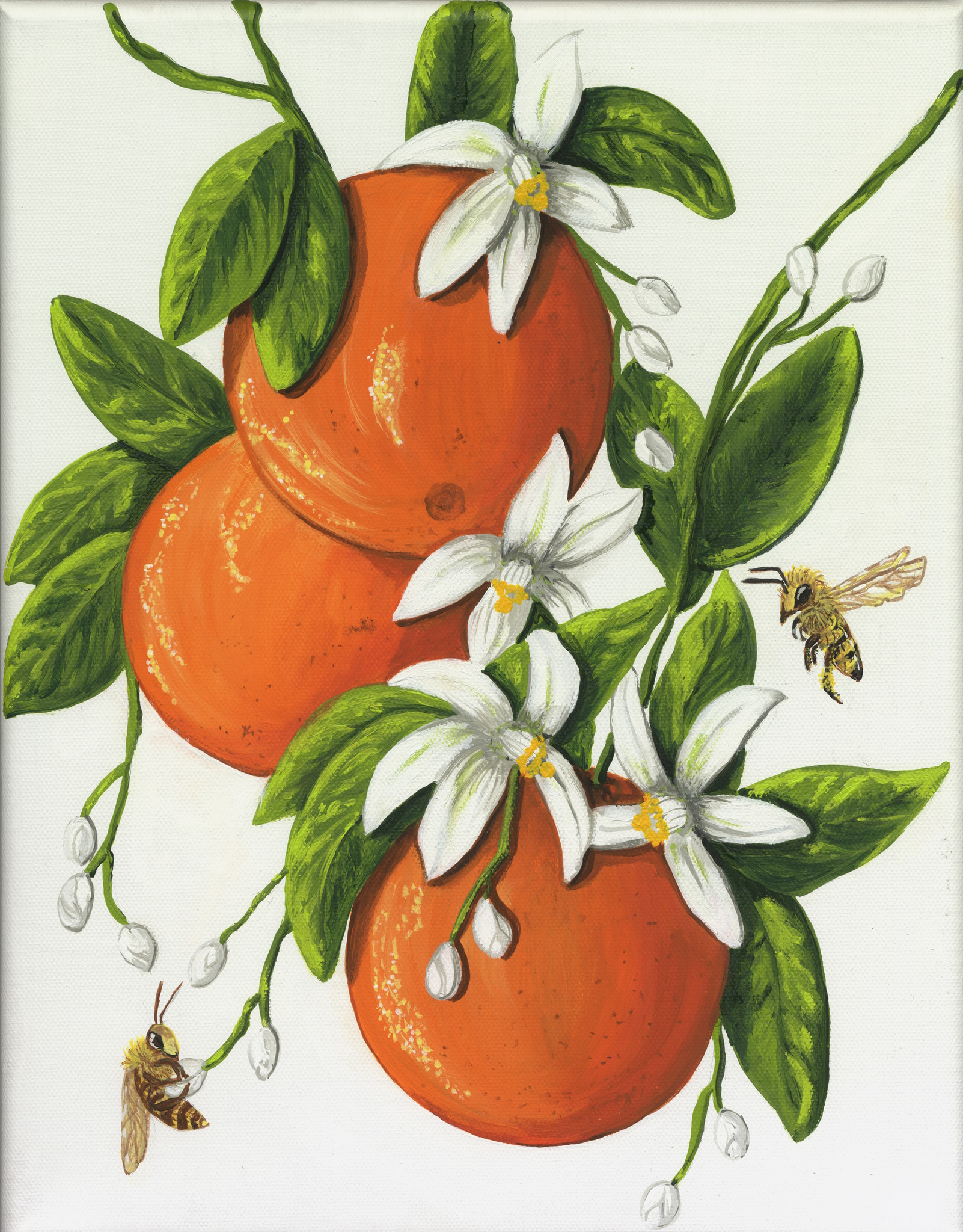 Orange Delight still makes me smile. I love the cute little bees and how they seem to be enjoying their day in the orange blossoms.